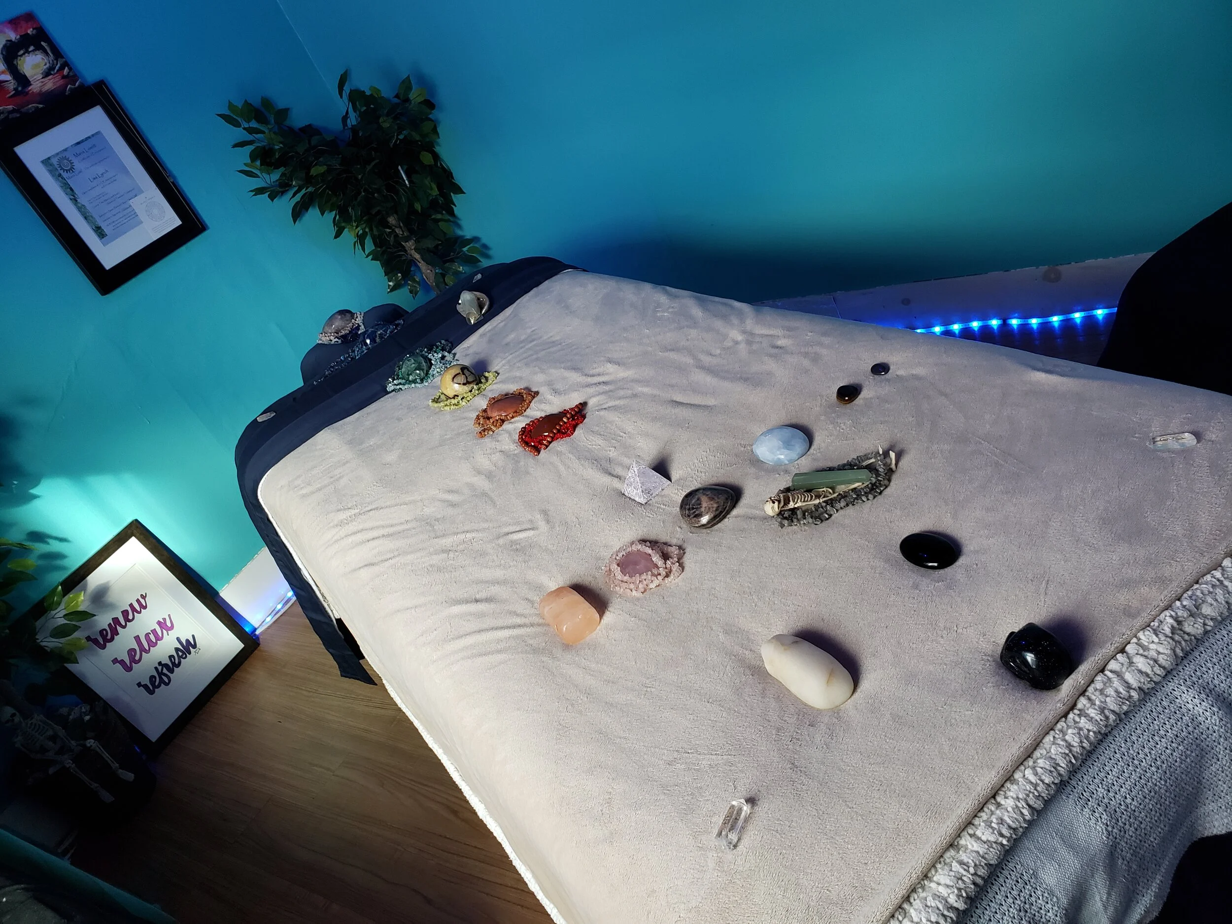 This Distance Healing is done via the internet, phone, or zoom, if you like. You are safe in your space and I am in the Wellness Room at Holistic Happiness.